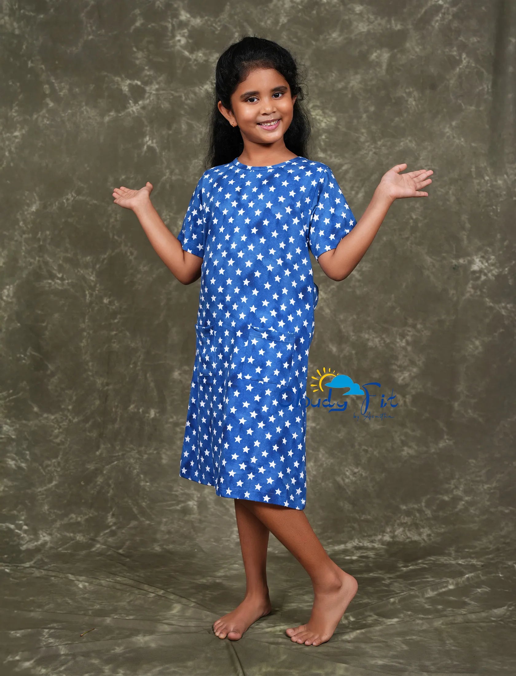 Get cozy in celestial style with our latest loungewear drop! This navy blue tie-dye set is sprinkled with white star prints all over, giving it a dreamy, night-sky vibe. Designed for both comfort and convenience, it features a classic round neckline and two front pockets — perfect for keeping your essentials close. Whether you're relaxing at home or stepping out for a quick coffee run, this piece blends laid-back comfort with a touch of stardust.