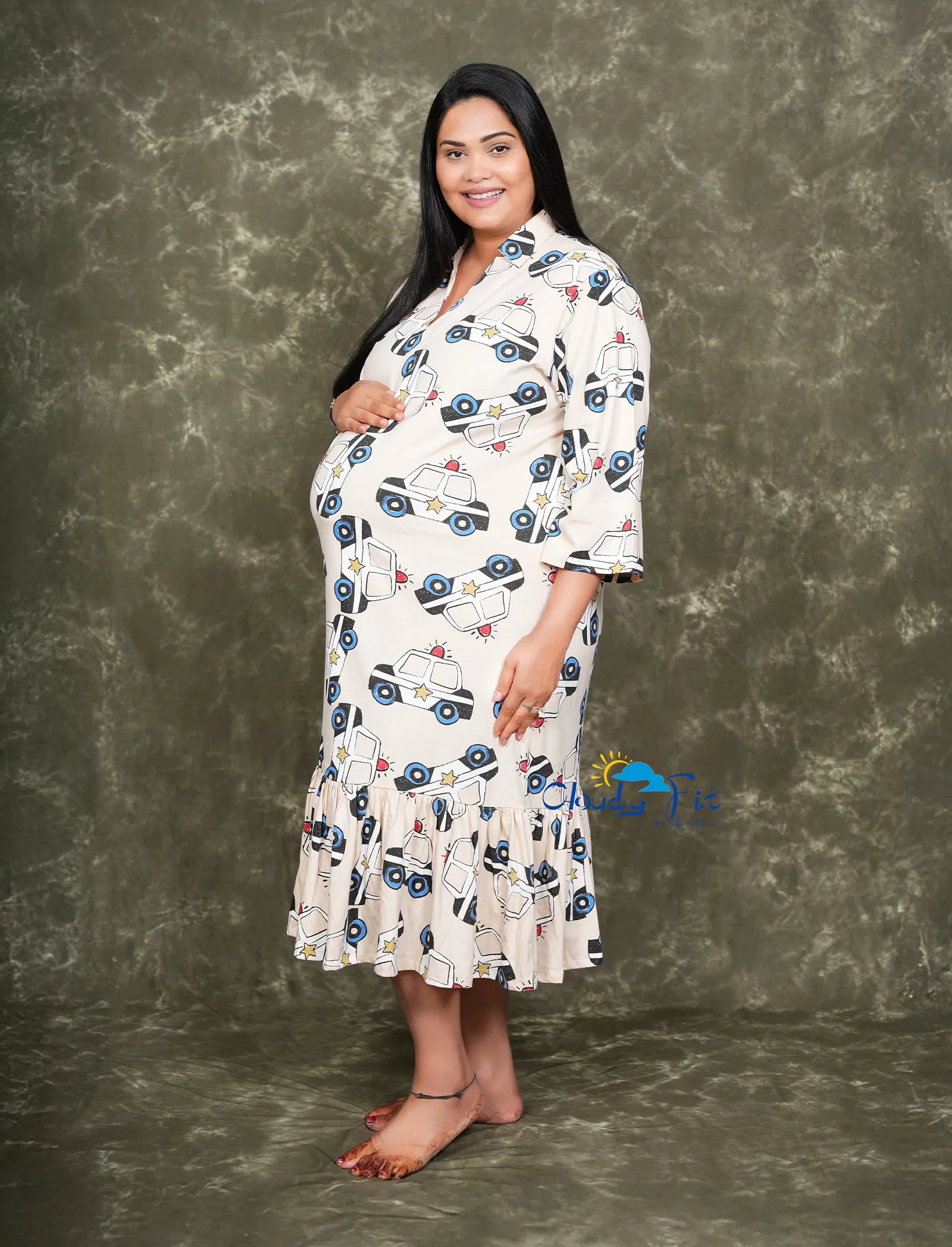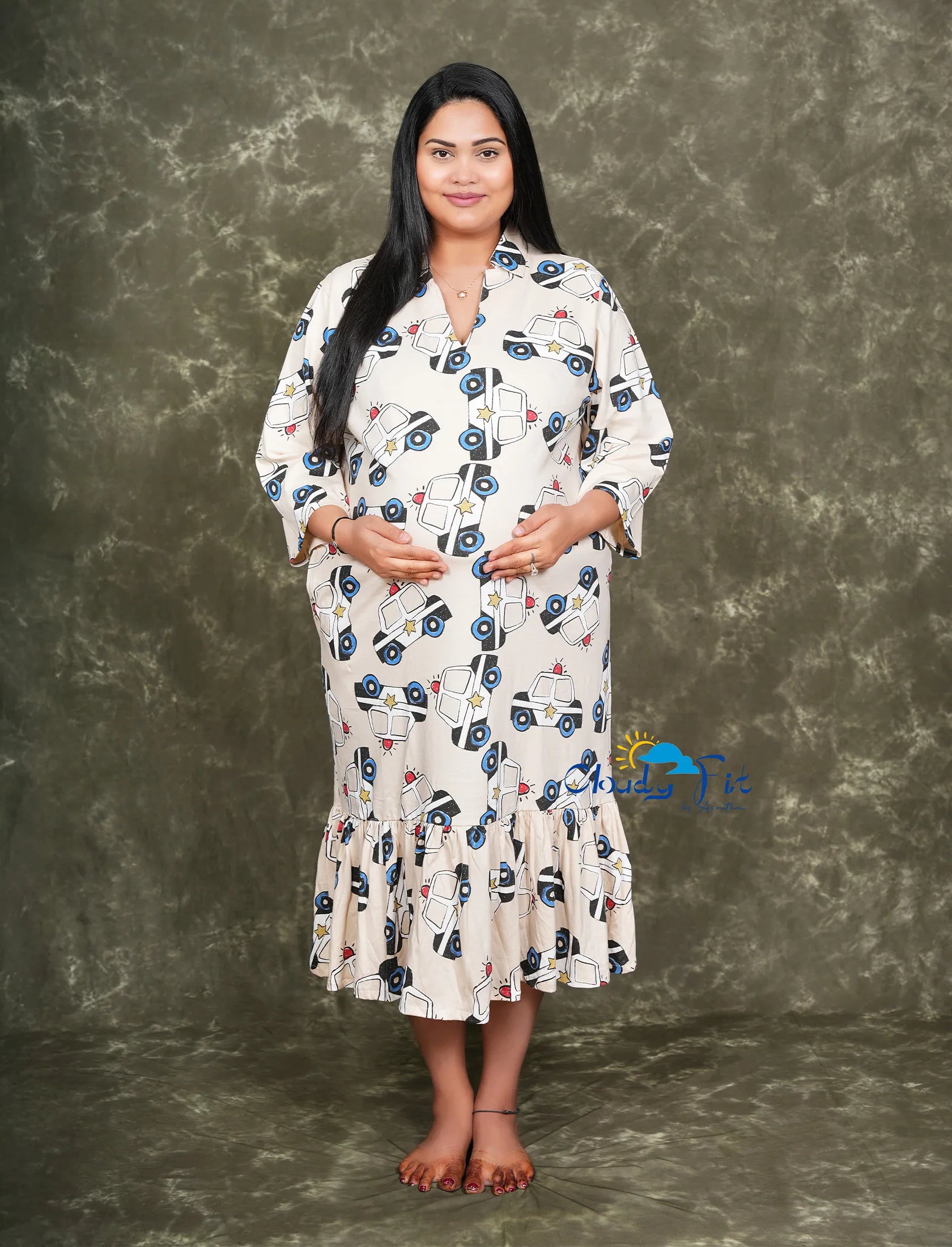 Product Description Product Highlights 👗 Fabric: 95% Cotton, 5% Polyester 🎨 Pattern: Prints all over ⚪ Color: Grey 👚 Sleeve: Short Sleeves 📏 Length: Maxi ⚡ Highlights: Has an invisible zipper and side pockets Special Features: 🤱 Feeding-Friendly: Comes with a built-in poncho and...