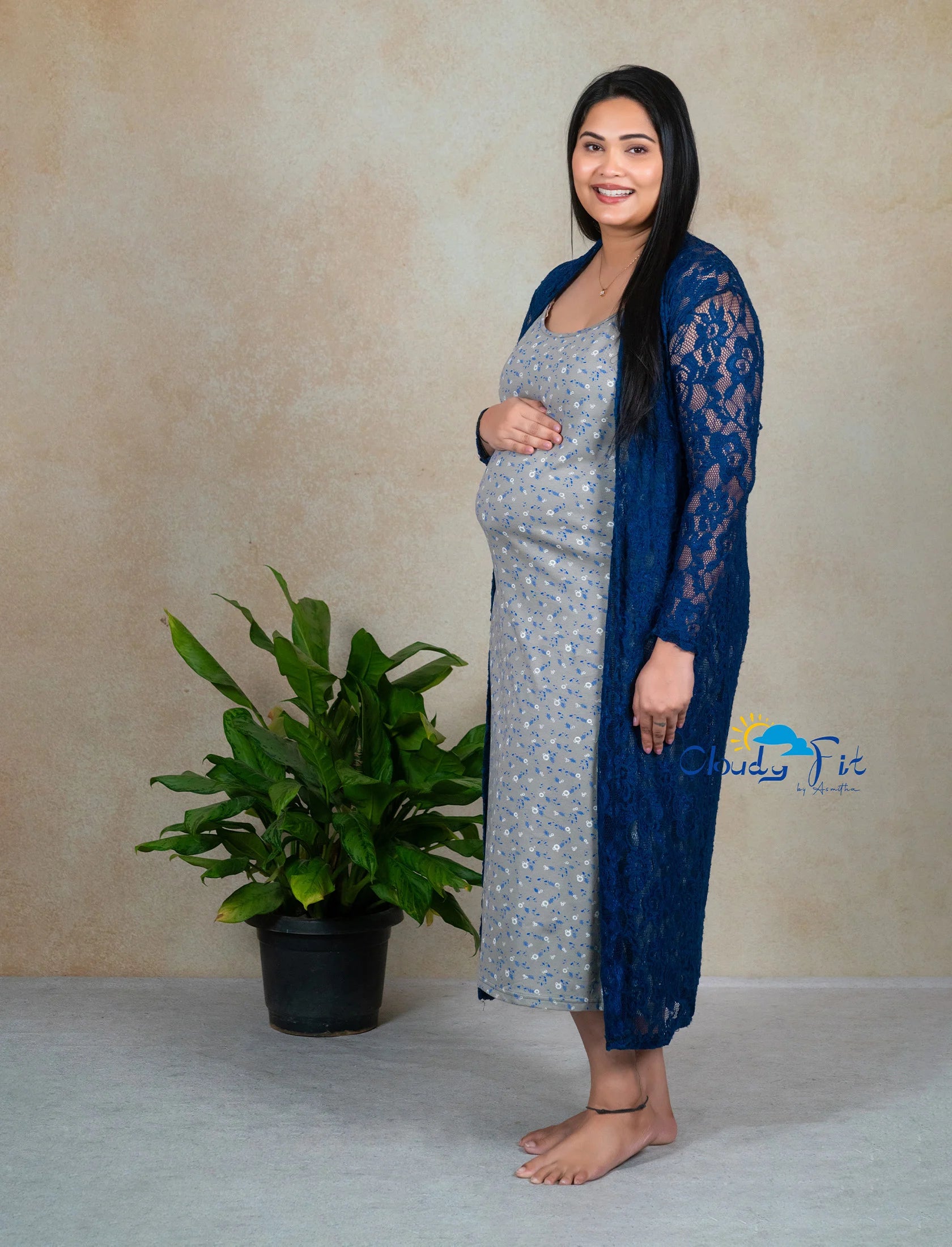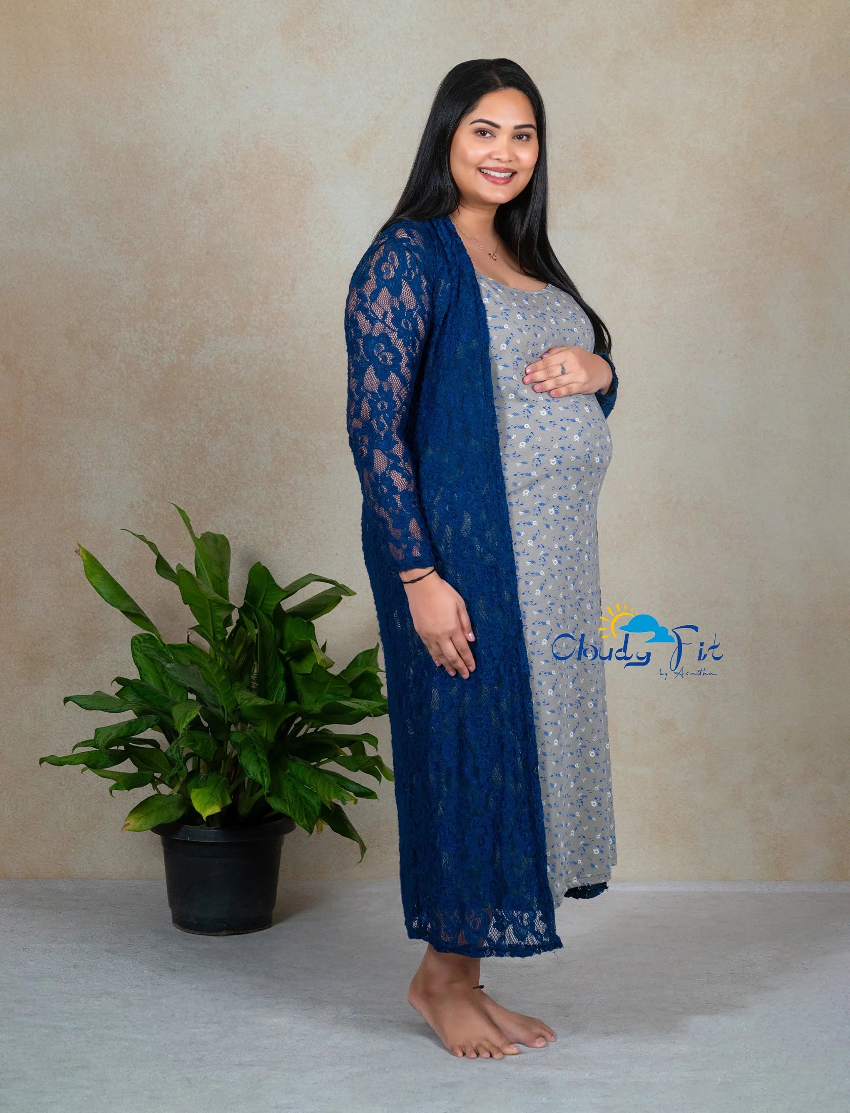 Product Description Product Highlights 👗 Fabric: 95% Cotton, 5% Polyester 🎨 Pattern: Prints all over ⚪ Color: Grey 👚 Sleeve: Short Sleeves 📏 Length: Maxi ⚡ Highlights: Has an invisible zipper and side pockets Special Features: 🤱 Feeding-Friendly: Comes with a built-in poncho and...